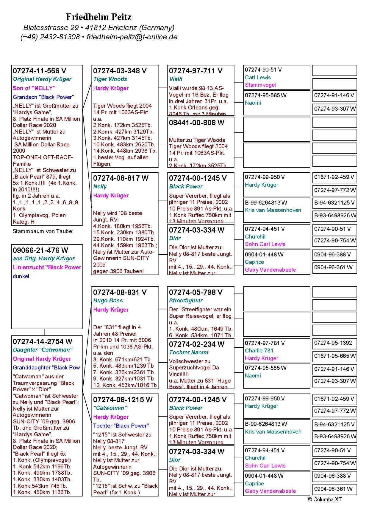 1. Konk 542km 1196Tb., 1.Konk. 499km 1788Tb.,1.Konk. 330km 1403Tb., 1.Konk 543km 745Tb., 1.Konk. 450km 1136Tb.; 2010 12Pr. 1065AS-Pkt.