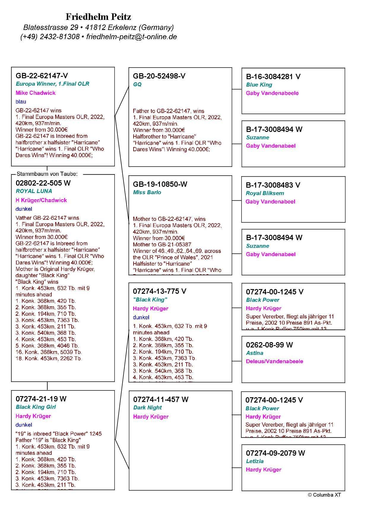 2012: beste T. auf den 3 Nationalflg., 758 Züchter und 16200 Tb. 3 Pr. 285 AS-Pkt.