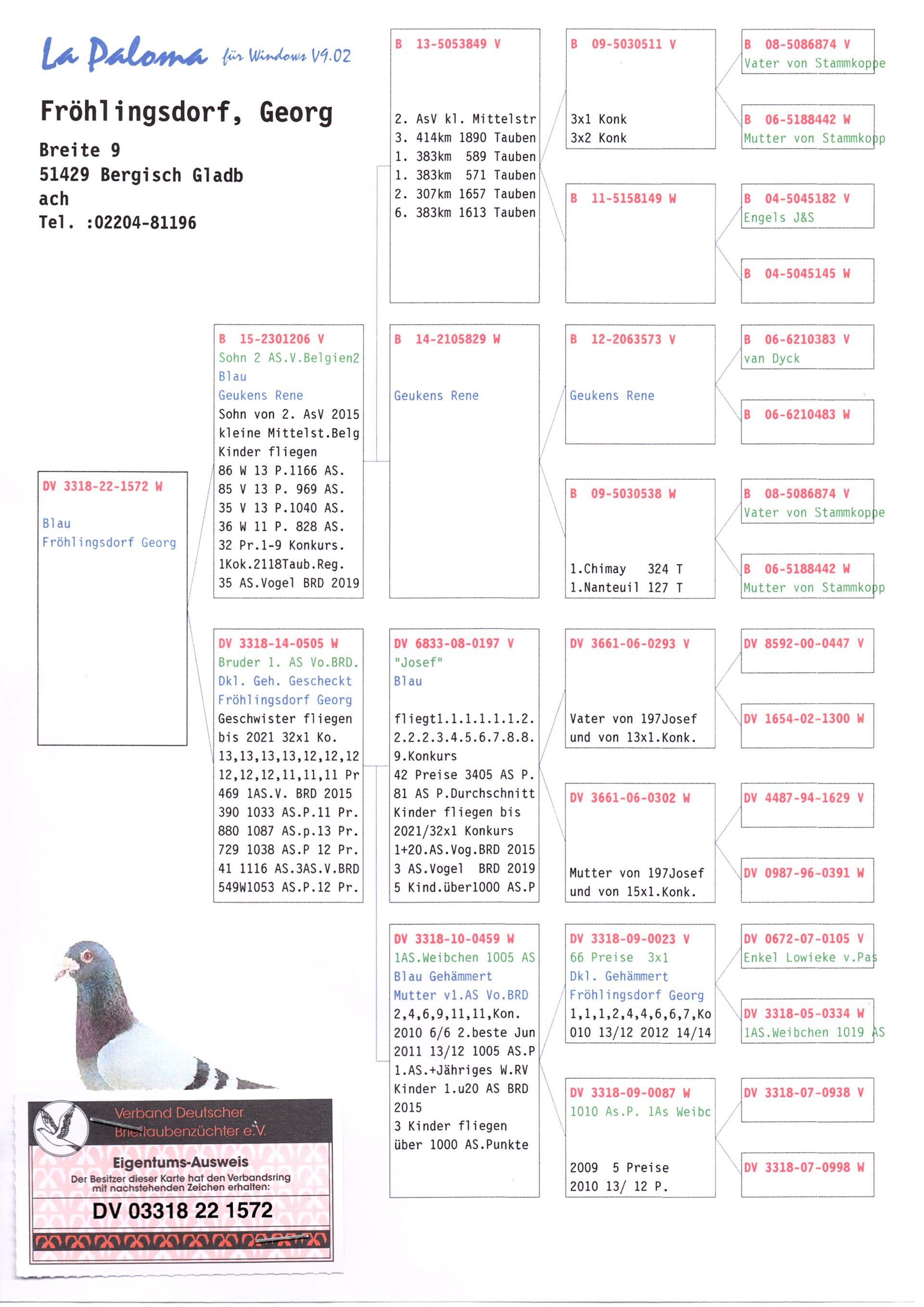 The "23" was one of the best breeding pigeons at G. Fröhlingsdorf