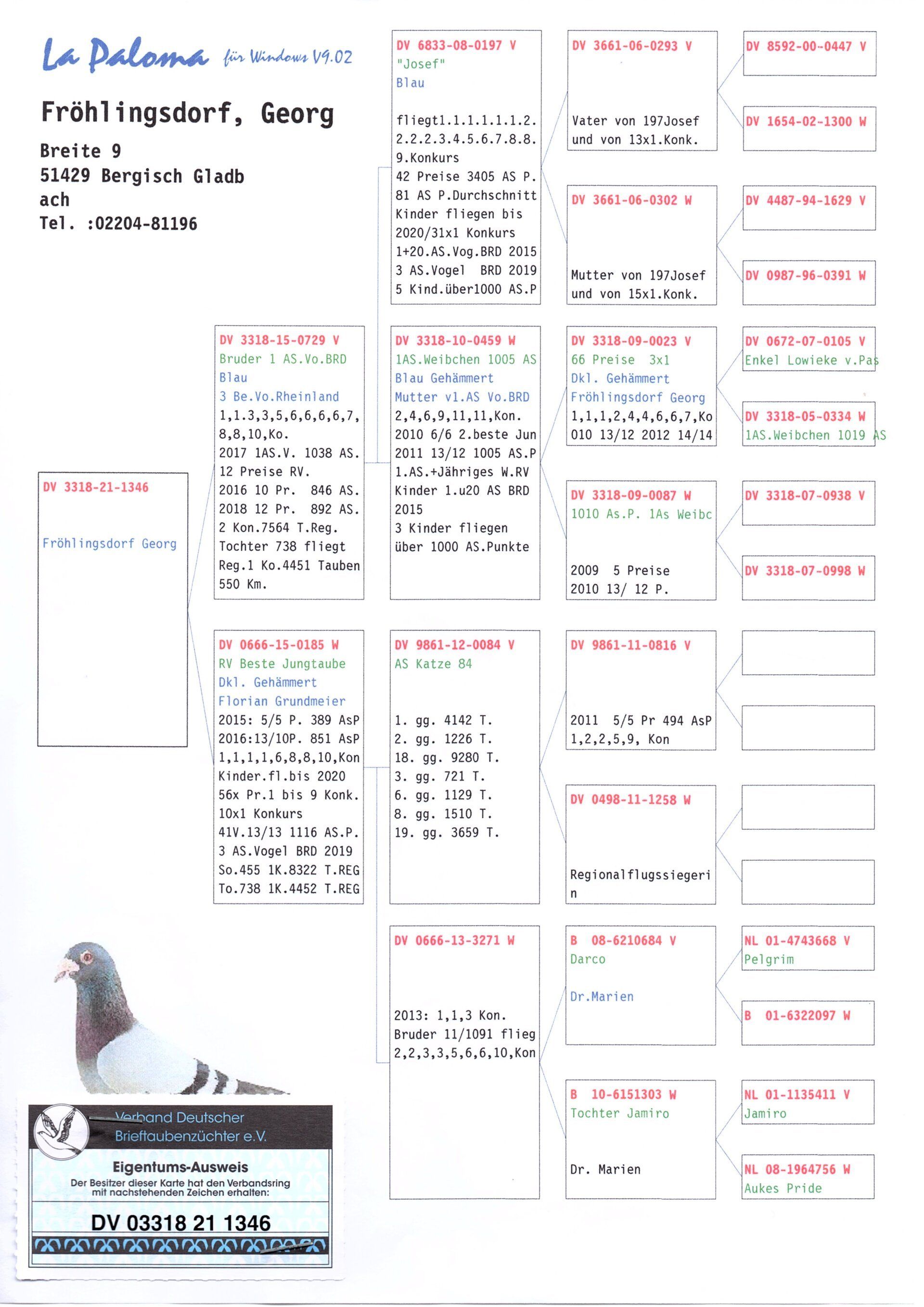 Father "23" was one of the best breeding pigeons at G. Fröhlingsdorf