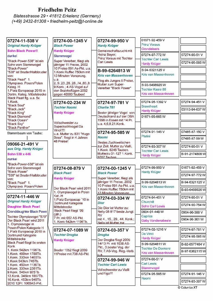 "Black Pearl" 1. Olymp.-V. Posen/Polen Kateg. H, 1.Platz Europacup 2010 in Dortmund Kateg. Mittelstrecke, Black Pearl fliegt u.a. 5x 1.Konk.