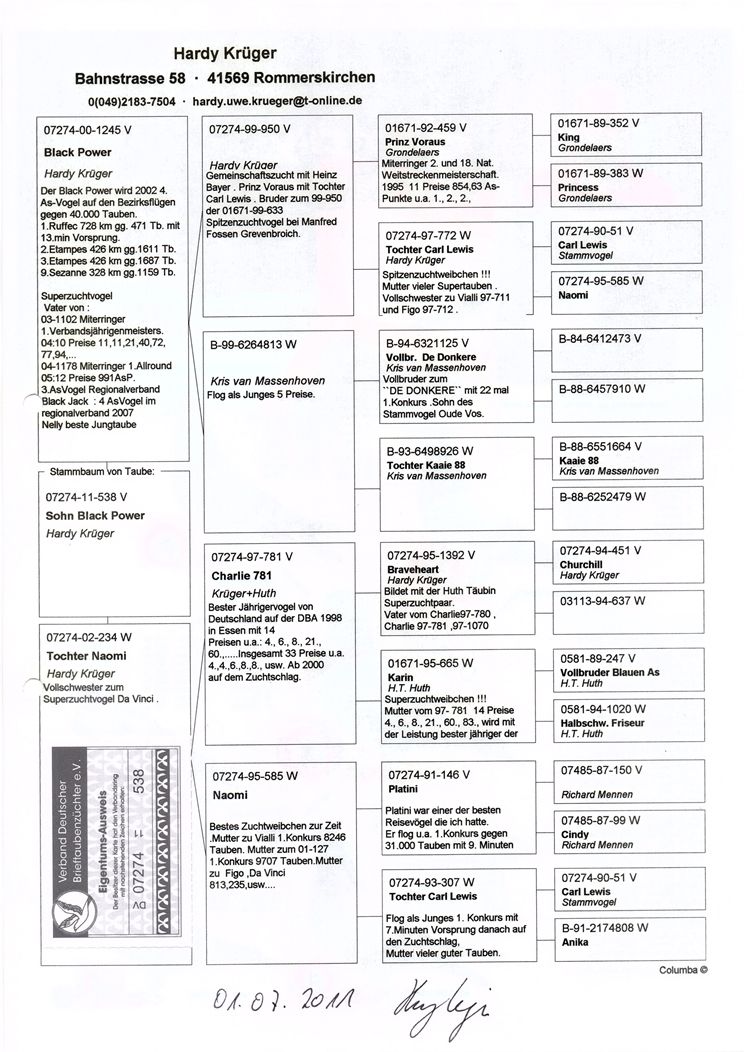 Top-Zuchtvogel, Kinder, Enkel, Ur-Enkel sind erfolgreich im "normalen" Programm, wie auch auf OLR.