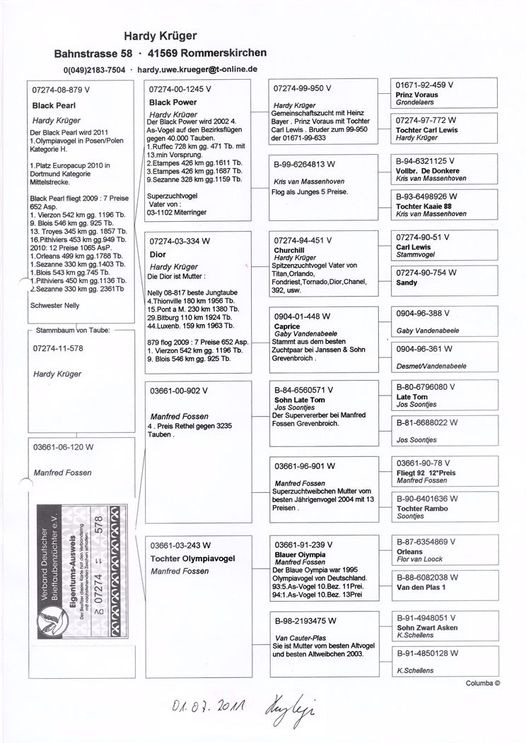 "Black Pearl" fliegt 5x 1. Konk., 1. Olympia Taube Kat. H, 1. Platz Europa-Cup Kat. Mittelstrecke, 12 Pr. 1065 AS-Pkt.
