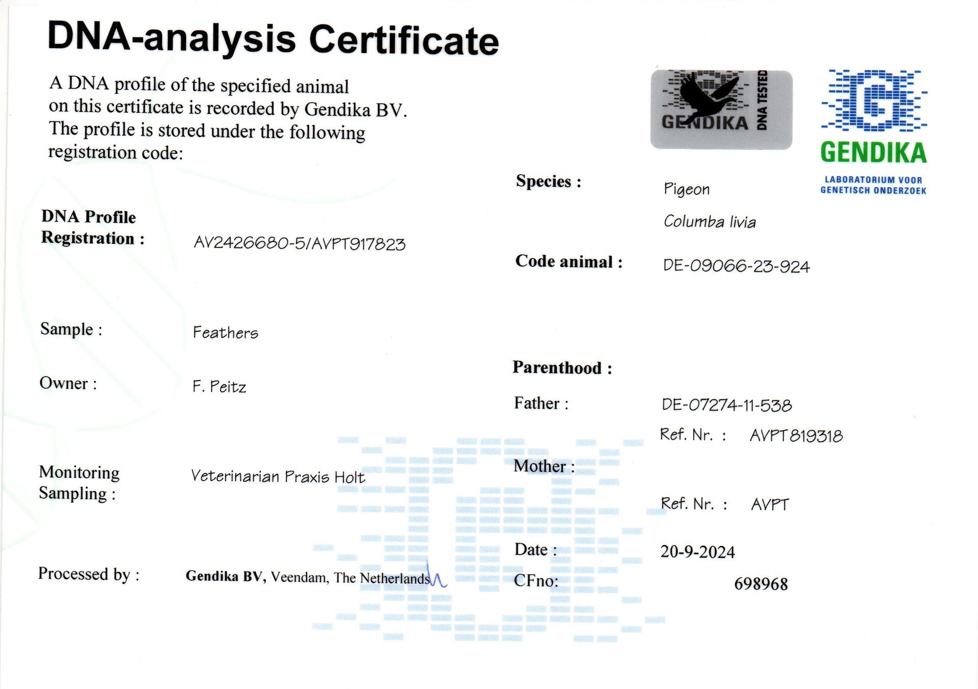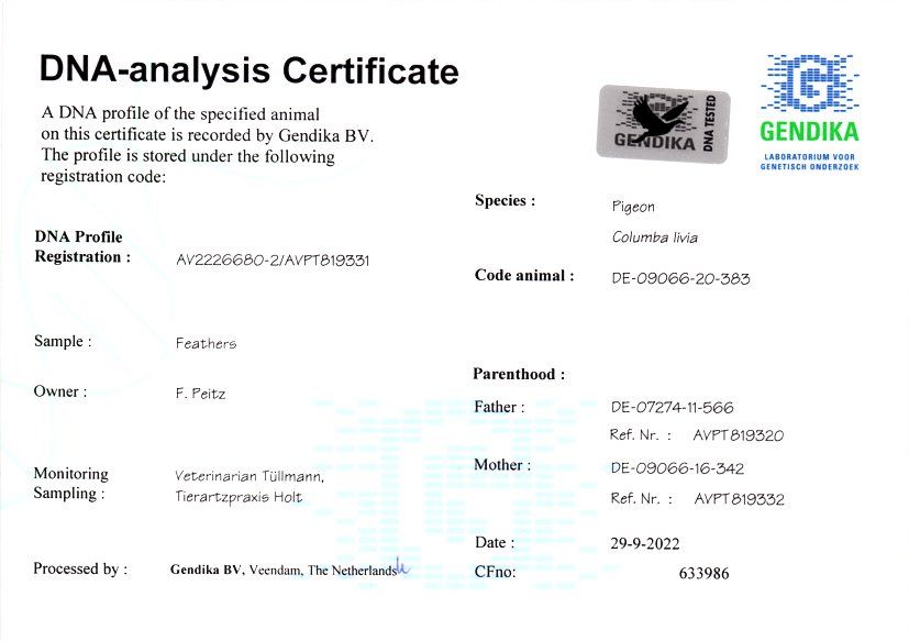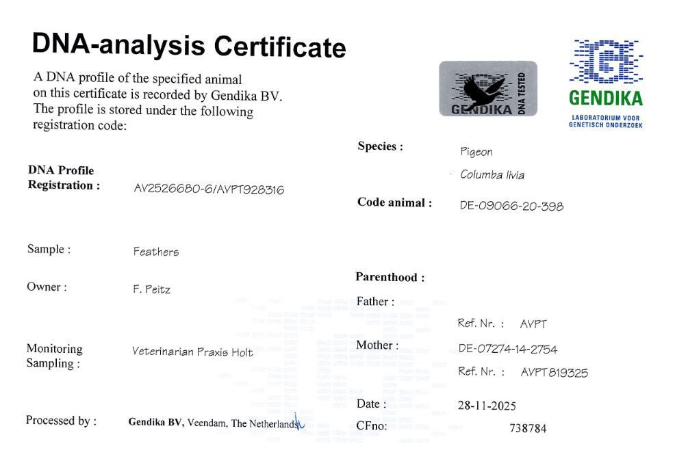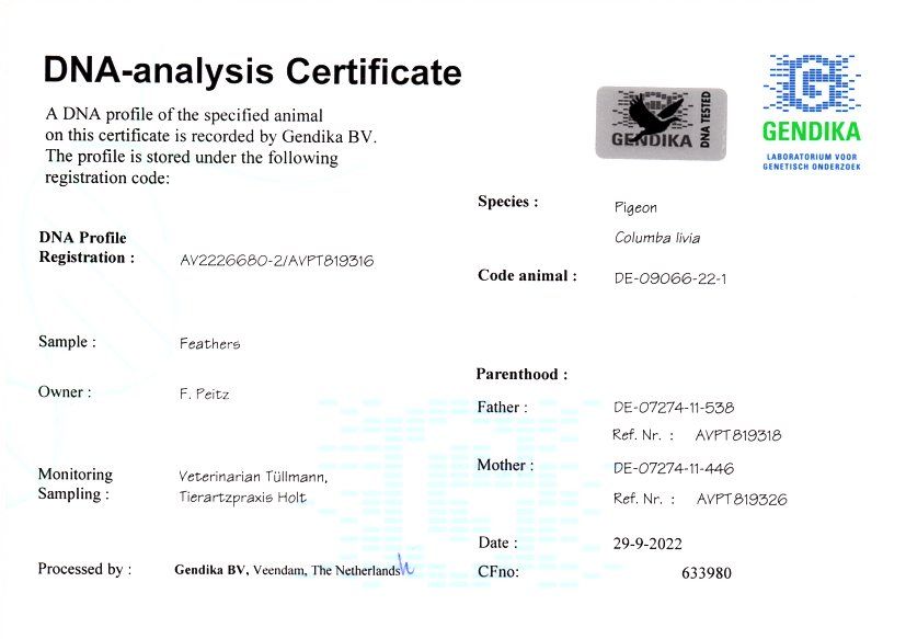 Syn "Bailey" x "Spanierin", wnuk ptaka rodzicielskiego "Da Vinci" w połączeniu z matką ptaka rodzicielskiego "Black Power"!
